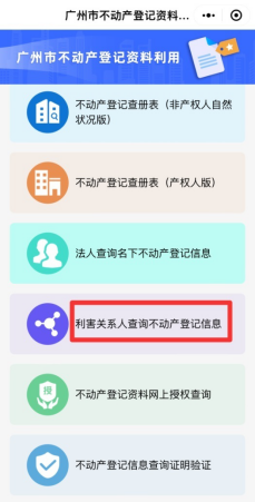 (一)1.利害关系人通过“广州不动产登记”微信公众号——“不动产登记资料”查询;