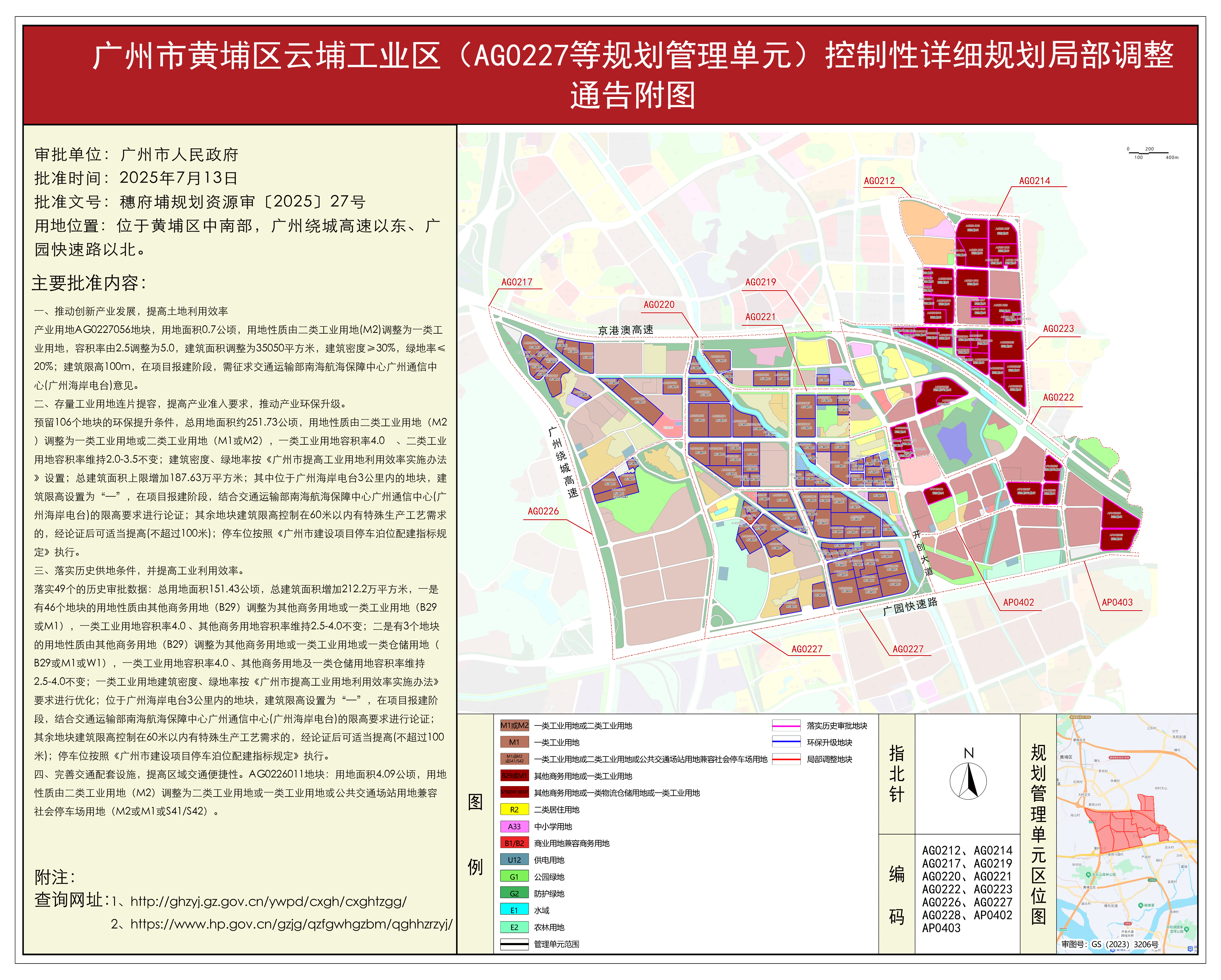 3.广州市黄埔区云埔工业区(AG0227等规划管理单元)控制性详细规划局部调整的批复(穗府埔规划资源审〔2025〕27号)