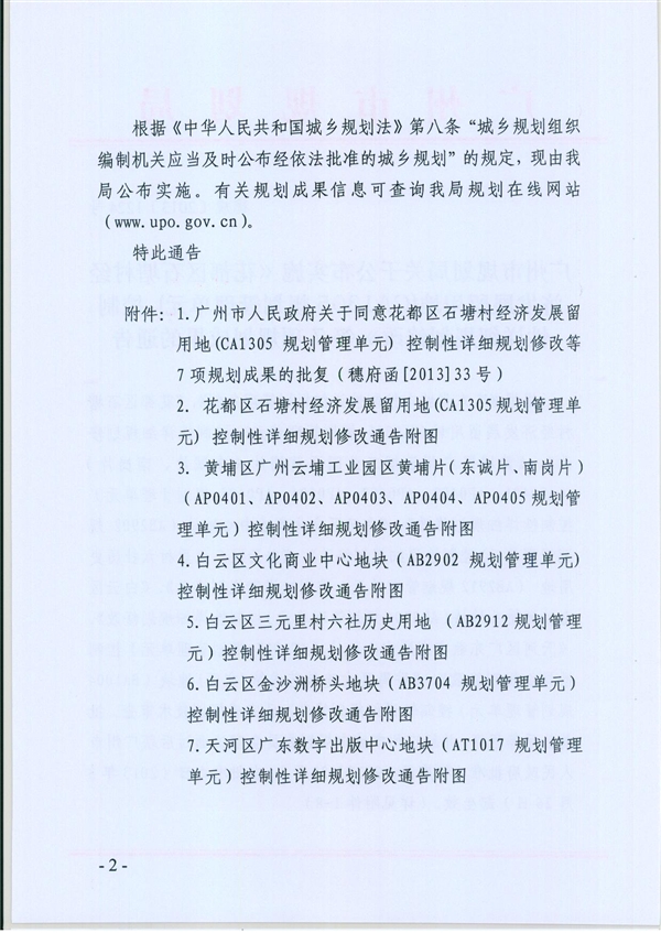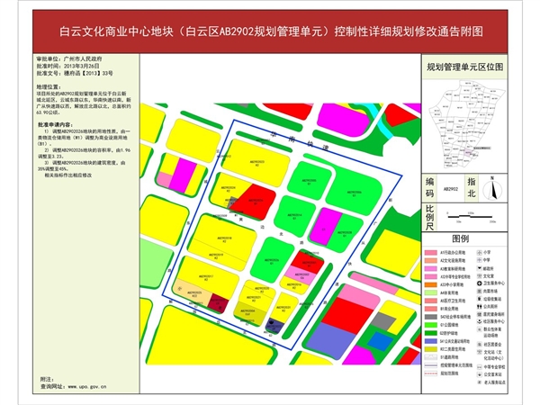 白云文化商业中心地块(白云区AB2902规划管理单元)控制性详细规划修改通告