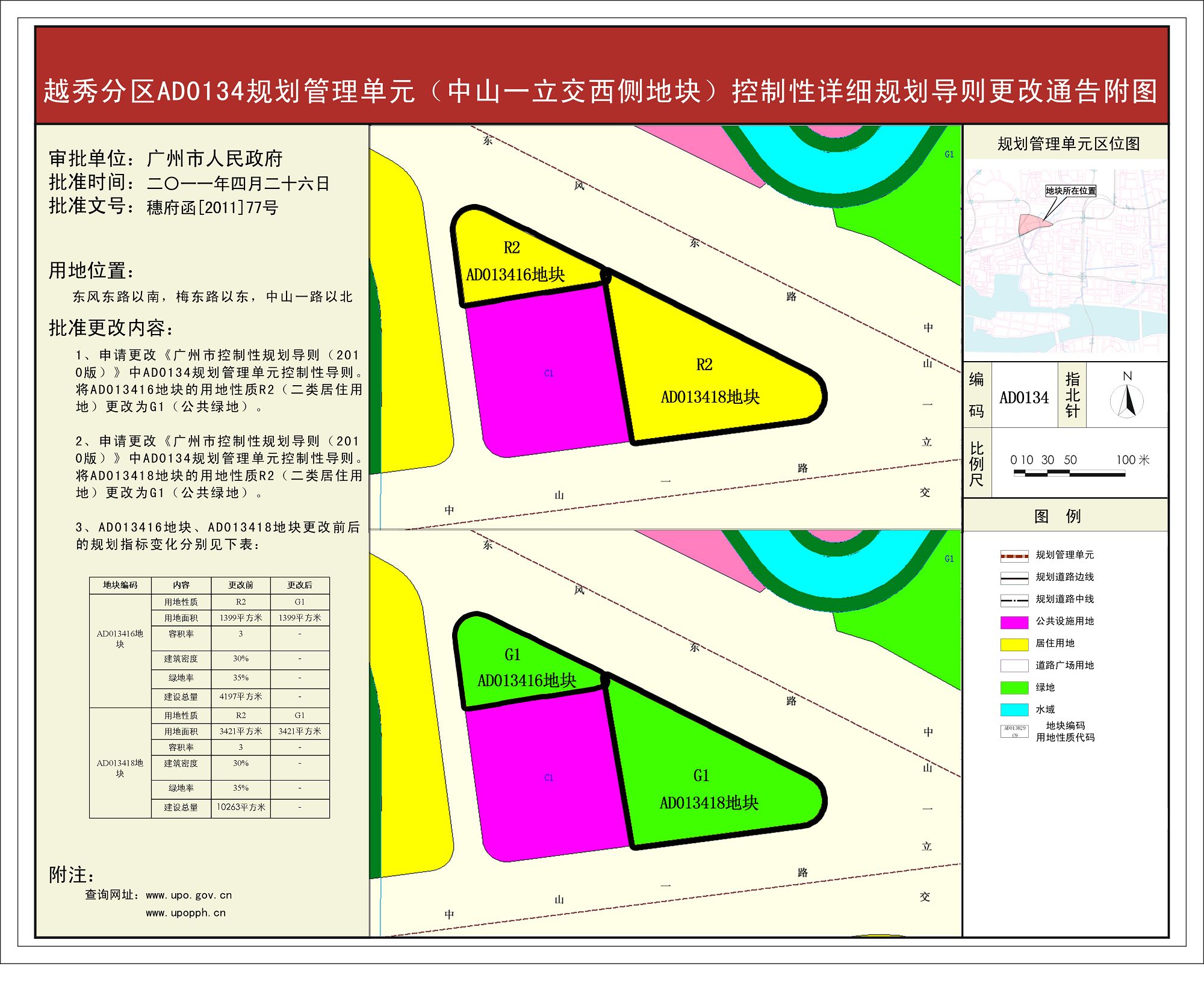 越秀分区AD0134规划管理单元(中山一立交西侧地块)控制性详细规划更改