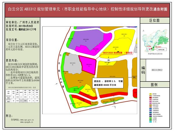 白云分区AB3312规划管理单元(市职业技能指导中心地块)控规导则更改