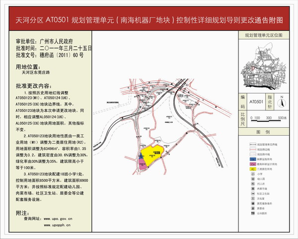 天河分区AT0501规划管理单元(南海机器厂)控制性详细规划导则是更改