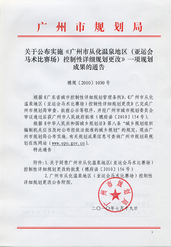 广州市从化温泉地区(亚运会马术比赛场)控制性详细规划更改