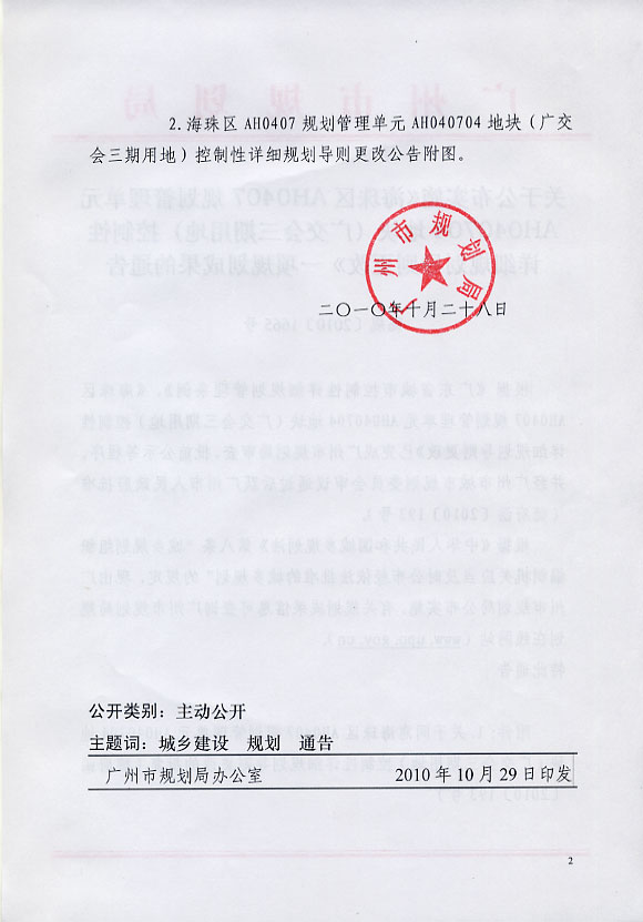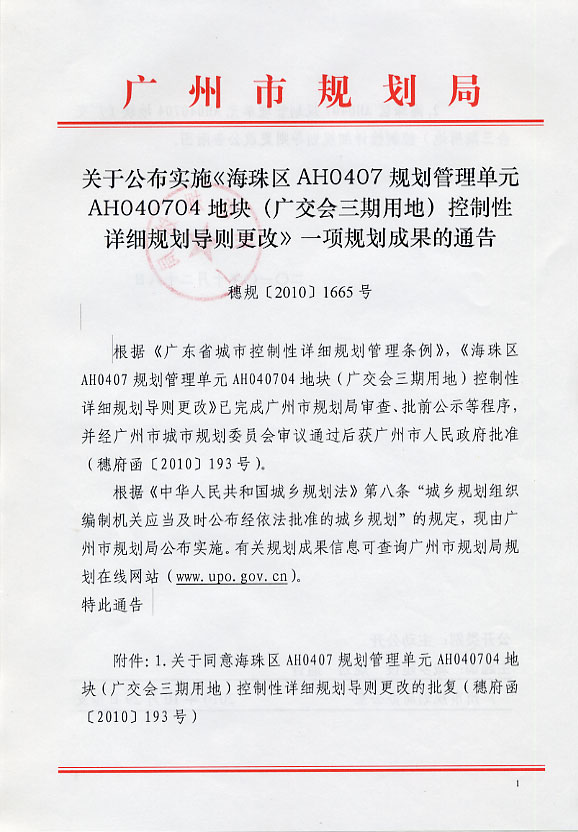 海珠区AH0407规划管理单元AH040704地块(广交会三期用地)控制性详细规划导则更改