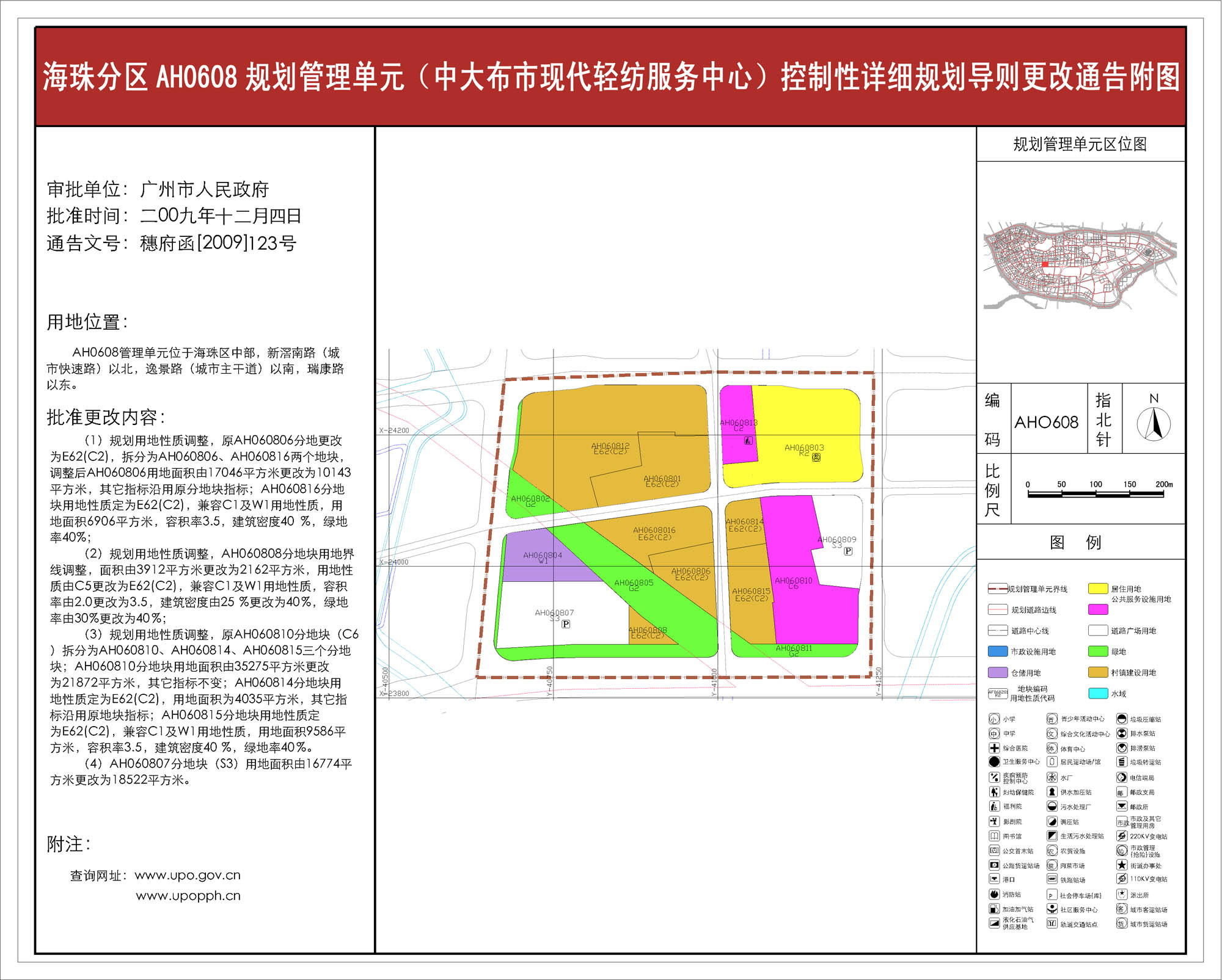 海珠分区AH0608规划管理单元(中大布市现代轻纺服务中心)控制性详细规划导则更改