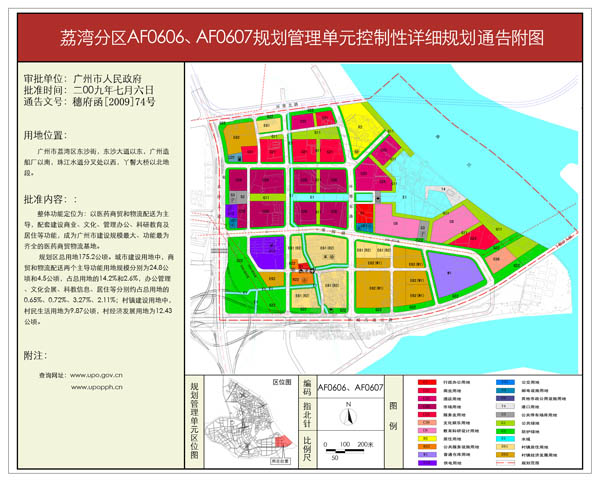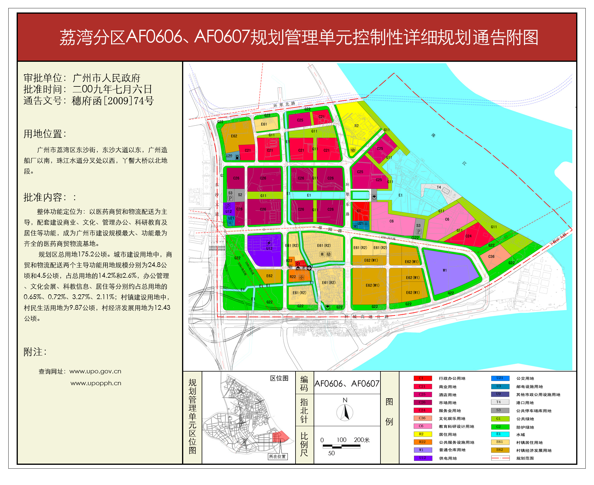 附件:1、关于同意《荔湾分区AF0606、AF0607规划管理单元(医药港地区)控制性详细规划》等4项规划成果的批复(穗府函[2009]74号);