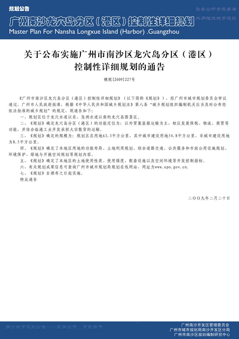 广州南沙龙穴岛分区(港区)控制性详细规划