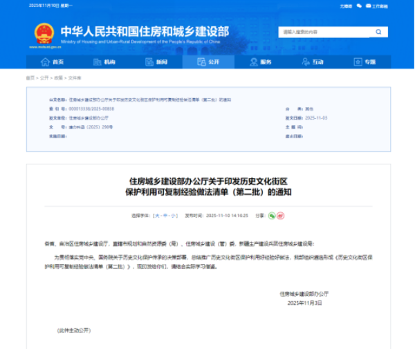 近日,住房城乡建设部印发《历史文化街区保护利用 可复制经验做法清单(第二批)》(以下简称《经验做法》)。
