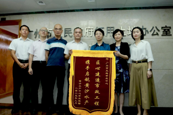 9月初,位于荔湾区东洛围码头的黄沙水产中心正式开业,近日,黄沙水产中心有关负责人专程来到广州市土地开发中心(以下简称市土发中心)赠送锦旗,感谢市土发中心在完善道路及管网建设方面的强力支持,为黄沙水产中心顺利运营提供了重要保障。