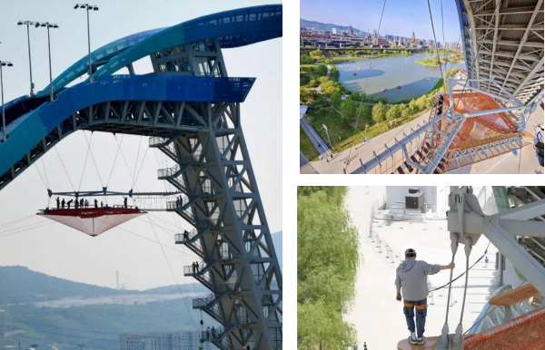 著名工业遗产首钢园,在冬奥会后华丽变身,融入体育、科技、文旅等诸多产业,成为北京硬核微度假目的地。首钢滑雪大跳台,赛后率先对公众开放,成为京西的地标性建筑和网红打卡地。首钢园充分利用大跳台本体独特的空间资源,于大跳台下高空悬空设置“心跳咖啡”,打造眺望永定河、俯瞰首钢园的720度空中特色观景平台。同时利用大跳台本体坡道设置特色运动体验,包括绳降、小蹦极、魔网探险、滑道速降等项目,创新性打造可持续利用的户外探险体验场景。