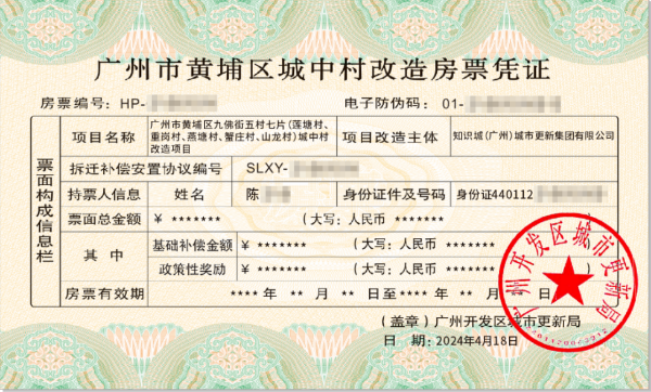 图1:黄埔区城中村改造房票凭证