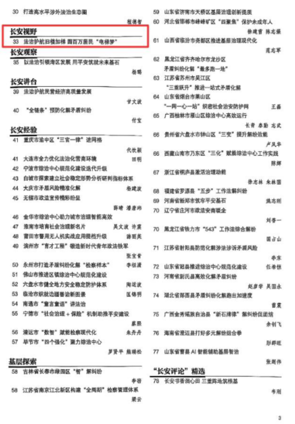 从“悬空”到“落地”,从“争议”到“共识”,《长安》杂志的刊载,是对广州以法治方式破解加梯难题的高度认可。小小一方电梯间,折射出一座城市的治理精度和民生温度。立足新征程上,我们也将继续深化“法治+”模式,让法治光芒照亮更多民生关切领域,为城市治理中的一道道复杂考题寻找更多规划资源“最优解”,为推进广州市治理体系和治理能力现代化书写更多“广州经验”。