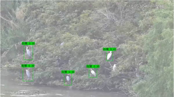 南沙区分局立足南沙生态保护实际,精准锚定监测频次不足、数据分散等痛点,推动项目融合物联网、人工智能、5G、大数据等新一代信息技术,构建覆盖南沙湿地、大角山海滨公园、坦头村红树林等重点区域的“空—天—地—海”一体化监测网络。通过部署AI智能识别技术搭建“观鸟天眼”,实现24小时不间断监测与记录,目前已支持88种鸟类识别,准确率超80%,为鸟类栖息规律研究与红树林生态保护提供了科学依据;同时,投放搭载多类传感器的智能无人船,开展自主巡航与实时水质建模,有效提升近岸海域生态环境的“动态感知与风险预警”能力。