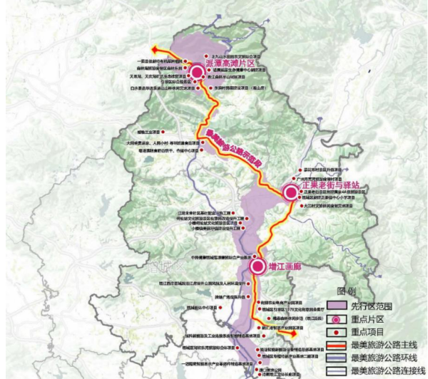 在928平方公里范围内,划定141平方公里作为先行区,涵盖派潭高滩片区、增江画廊、最美旅游公路示范段、正果老街与驿站等区域。先行区将聚焦产业发展、基础设施、生态环境、公共服务和品质提升五类项目,推动条件成熟的项目率先建设,形成示范带动效应。