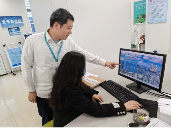 市民陈女士在工作人员的指导下,上手体验了从地图精准定位到房屋信息展示的全流程操作,她对服务给予了充分肯定。