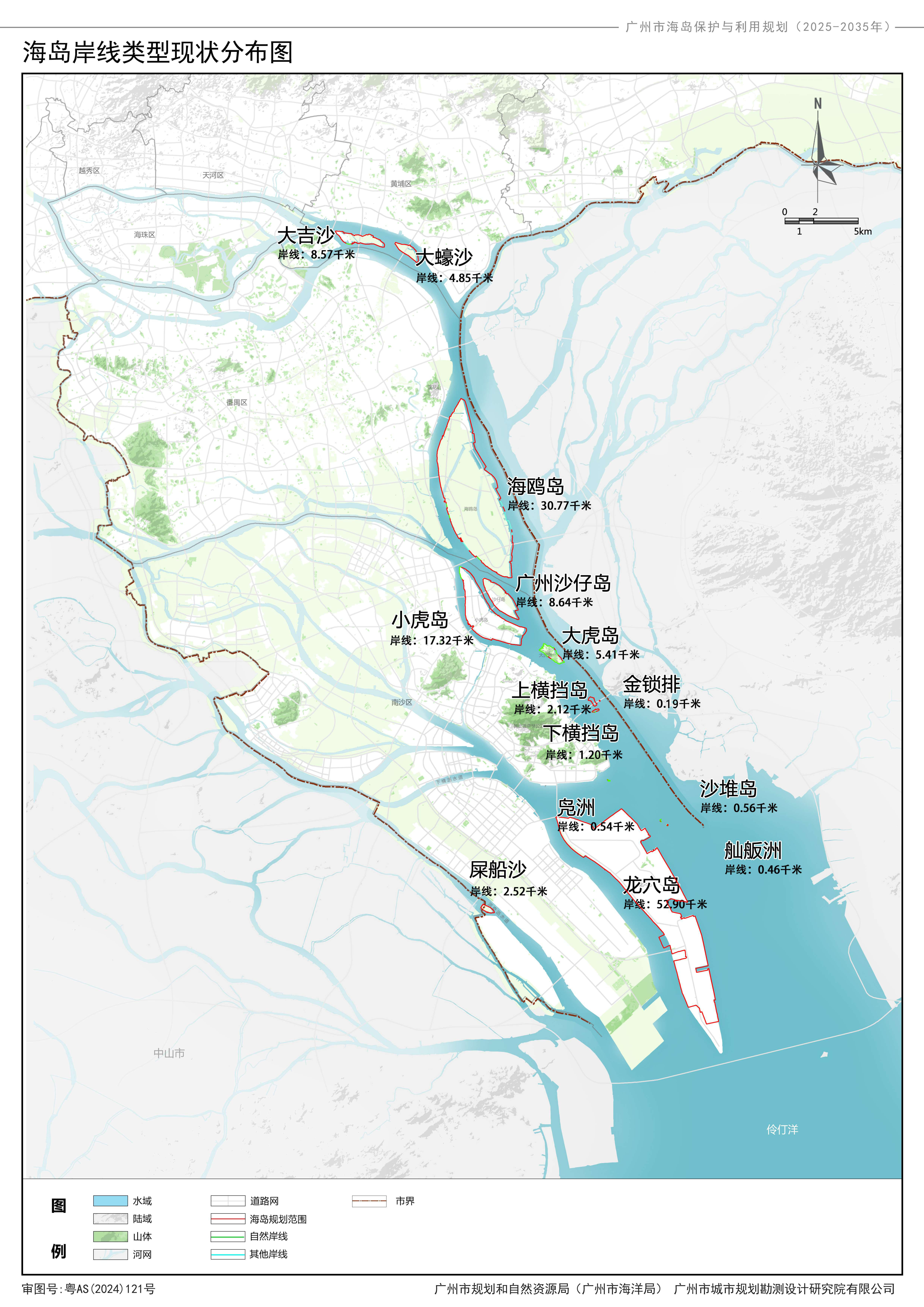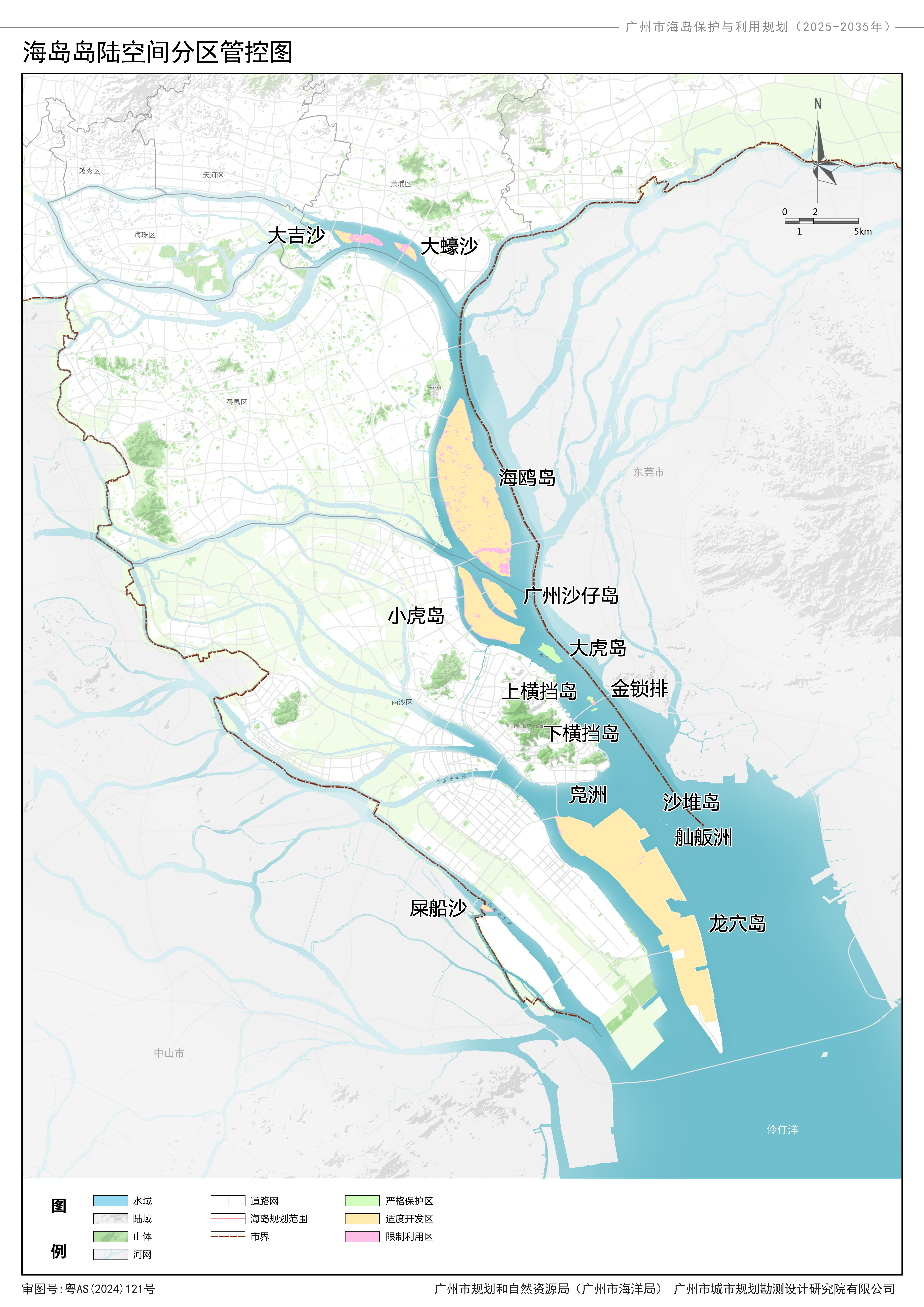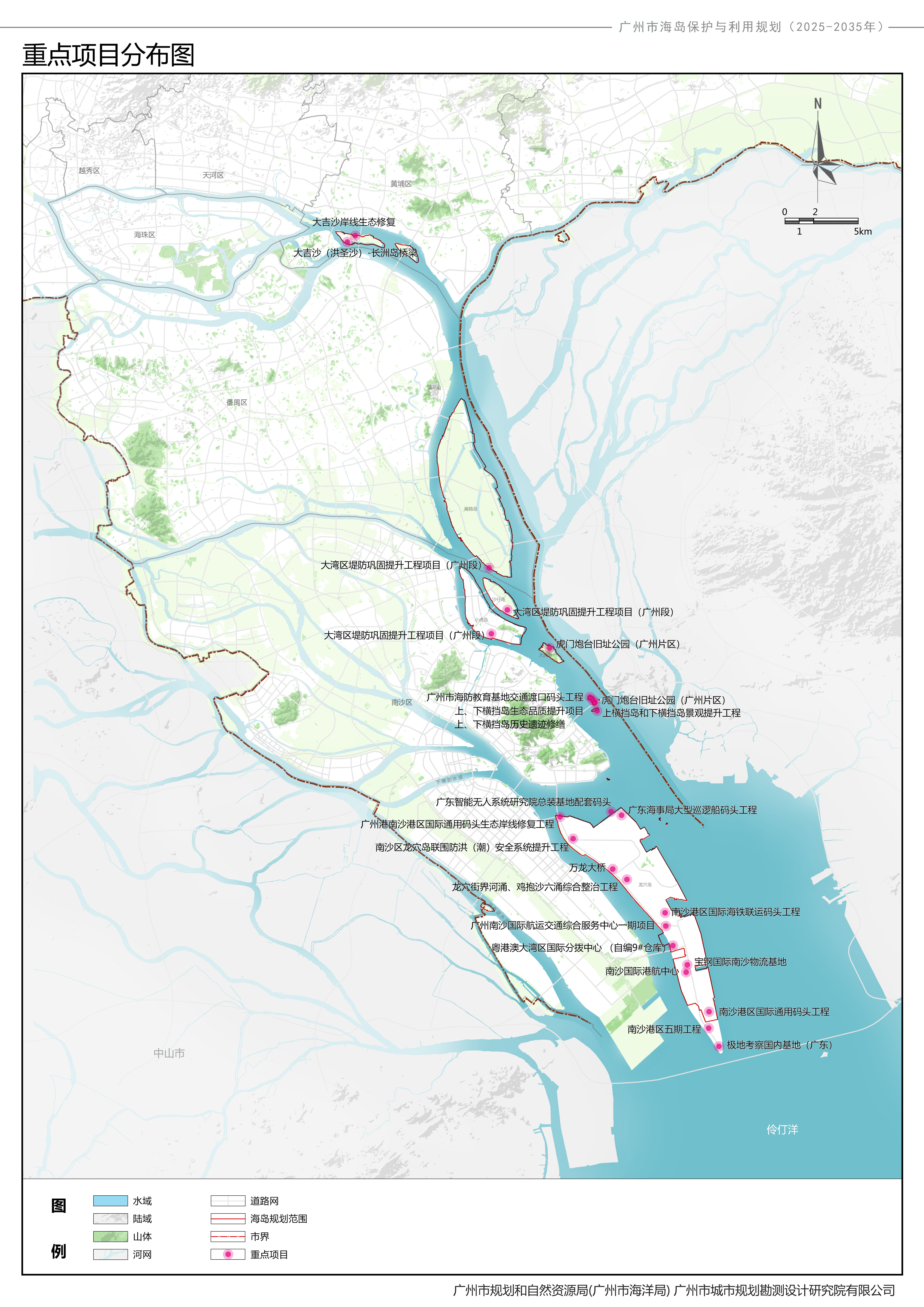 从全市来看,向海发展的良好态势为海岛保护利用提供新场景。2024年9月,国务院批复的《广州市国土空间总体规划(2021—2035年)》,首次赋予广州“彰显海洋特色的现代化城市”的城市性质,提出构建珠江口特色岛链,强化14个海岛的分类保护利用。《广州面向2049的城市发展战略》提出打造“全球领先的海洋之城”,系统谋划海岛的整体保护利用。2025年2月,《广州市建设海洋创新发展之都规划》印发,提出构建“一带三区,串珠成链”的总体空间格局,促进海洋创新优势资源向滨海重点片区及园区集中。2025年3月,广州申报的“珠江三角洲河口海洋生态修复示范”项目成功获批纳入联合国“海洋十年”项目,致力积极探索河口型城市“城海共生”海洋生态保护修复模式。