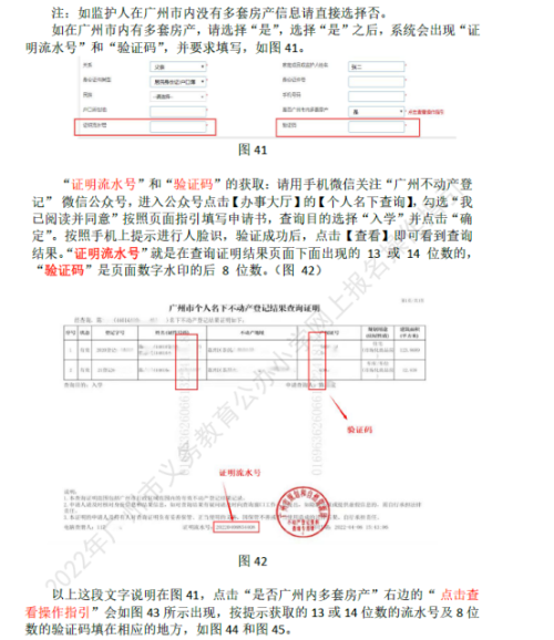 广州推行不动产登记信息共享查询机制,家长填写完整“广州市义务教育学校招生报名系统”中的“监护人信息”环节信息,同意授权查询名下房产登记情况后,教育部门可通过市规划和自然资源提供的共享接口核查房产登记信息的,原则上无需家长另行查询及提交房产证明信息。