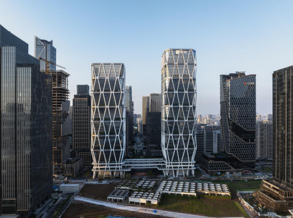 除了提升空间品质,总师制度的另一显著成效在于促进了不同开发主体间的协同。以三一重工为例,三一重工与树根互联地块,项目方原计划设计为双塔对称方案加高空连接体,这将形成并不适合该地段的中央纪念性双塔形态。总师团队利用建筑高度弹性条件,协调拉大两栋建筑的高度差,并推动地块在裙楼区域申请空中连接体。该连接体既减少对城市底层空间的压迫(距地面12米净高),又符合企业对双塔功能联系的需求,并将连接体的公共空间24小时无条件开放给市民使用,实现企业便利性与公共效益的平衡。三一重工及树根互联地块已完成建筑主体及场地验收,依托根云工业互联网操作系统推动智能制造技术研发与产业生态培育,多家上、下游总部企业已入驻,工业互联网领域高端人才汇集,助推区域数智化升级。