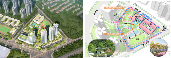 (3)“人本绿色、品质提升”:结合现状南岗河碧道梳理亲水、连续的滨水步道,并结合道路网络,打造快速、通达、舒适的“步行+非机动车”慢行廊道体系。地块内部则采用人车分流设计,通过引导片区居民采用绿色健康的交通出行方式,让居民出行更安全、更舒适。