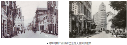 广州城市系统的形成,有着众多鲜明的特征,骑楼街就是最有代表性特征之一,也是一种城市的形态、城市生活的形态。广州的骑楼街在恩宁路、上下九路、第十甫路、北京路、中山路、人民南路、一德路等商业街道比较集中,各建筑门廊串联形成了沿街廊道,往来行人可以躲避日晒和雨淋,又可以沿街逛商店,是具典型地域特征的服务城市生活的空间形态。