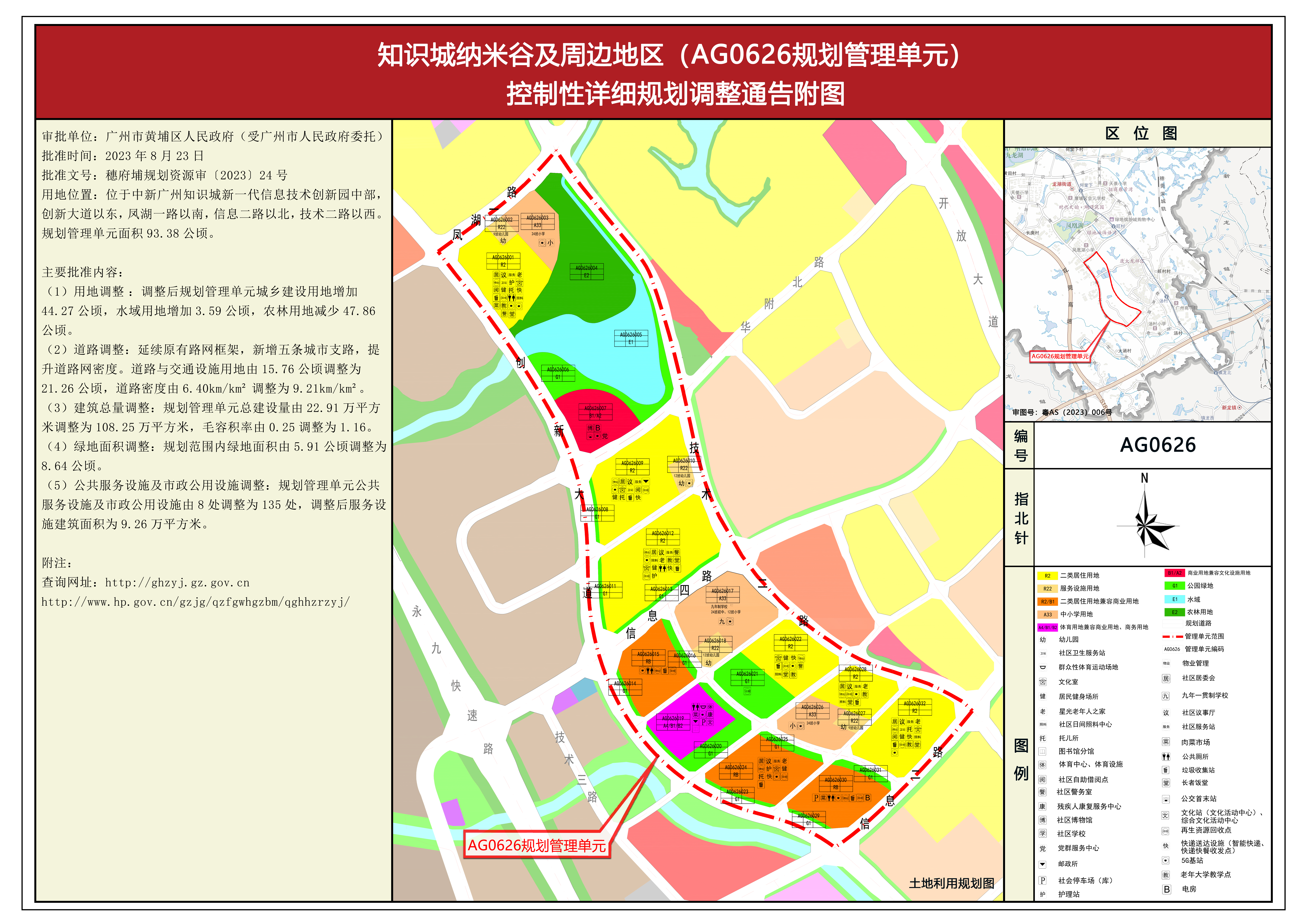 根据《广东省城市控制性详细规划管理条例》有关规定,《知识城纳米谷周边地块(AG0626规划管理单元)控制性详细规划调整》已获广州市黄埔区人民政府批准(受广州市人民政府委托)(穗府埔规划资源审〔2023〕24号),自批准之日(2023年8月23日)起生效。