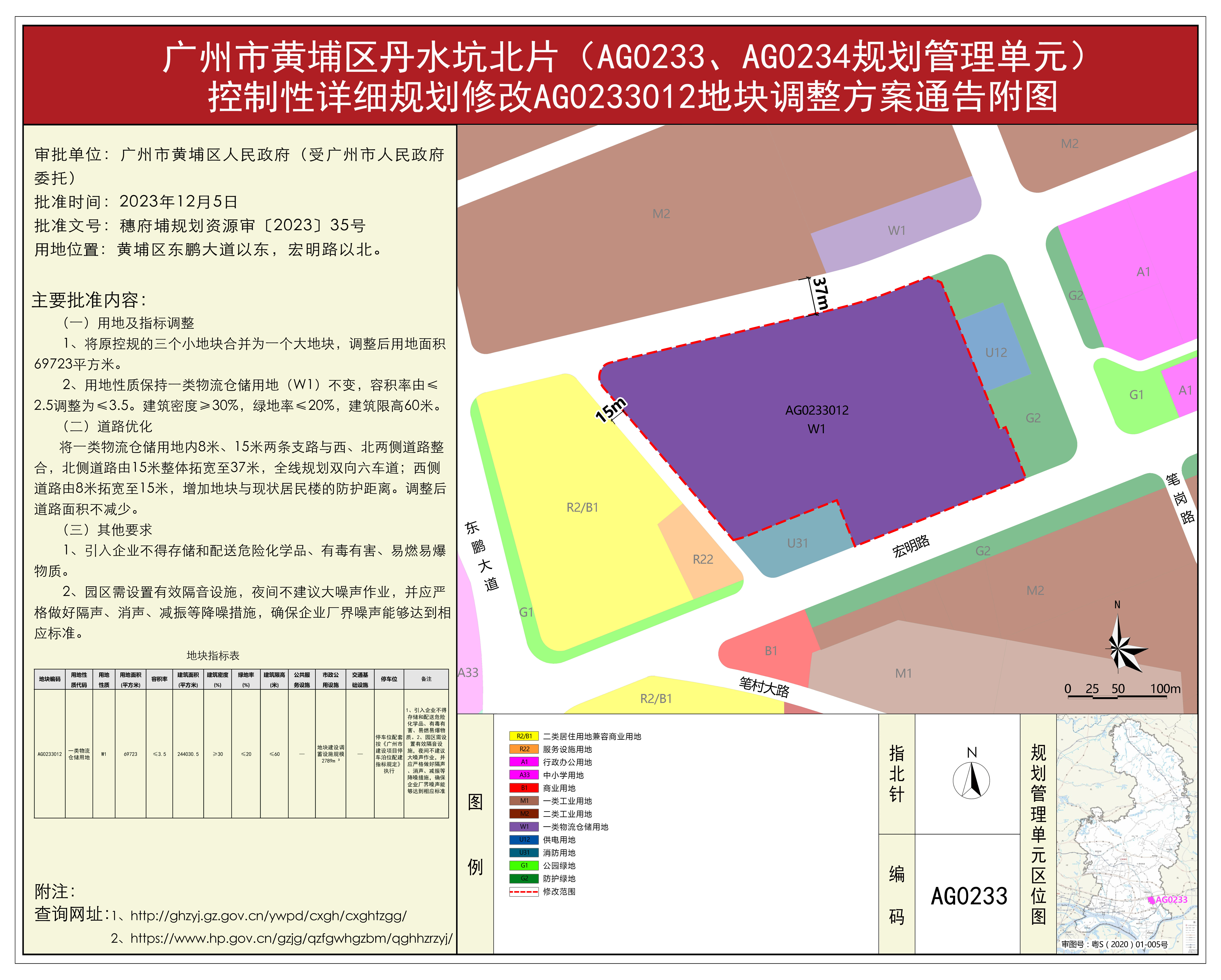 2.广州市人民政府关于同意黄埔区丹水坑北片(AG0233、AG0234规划管理单元)控制性详细规划修改AG0233012地块调整方案的批复(穗府埔规划资源审〔2023〕35号)