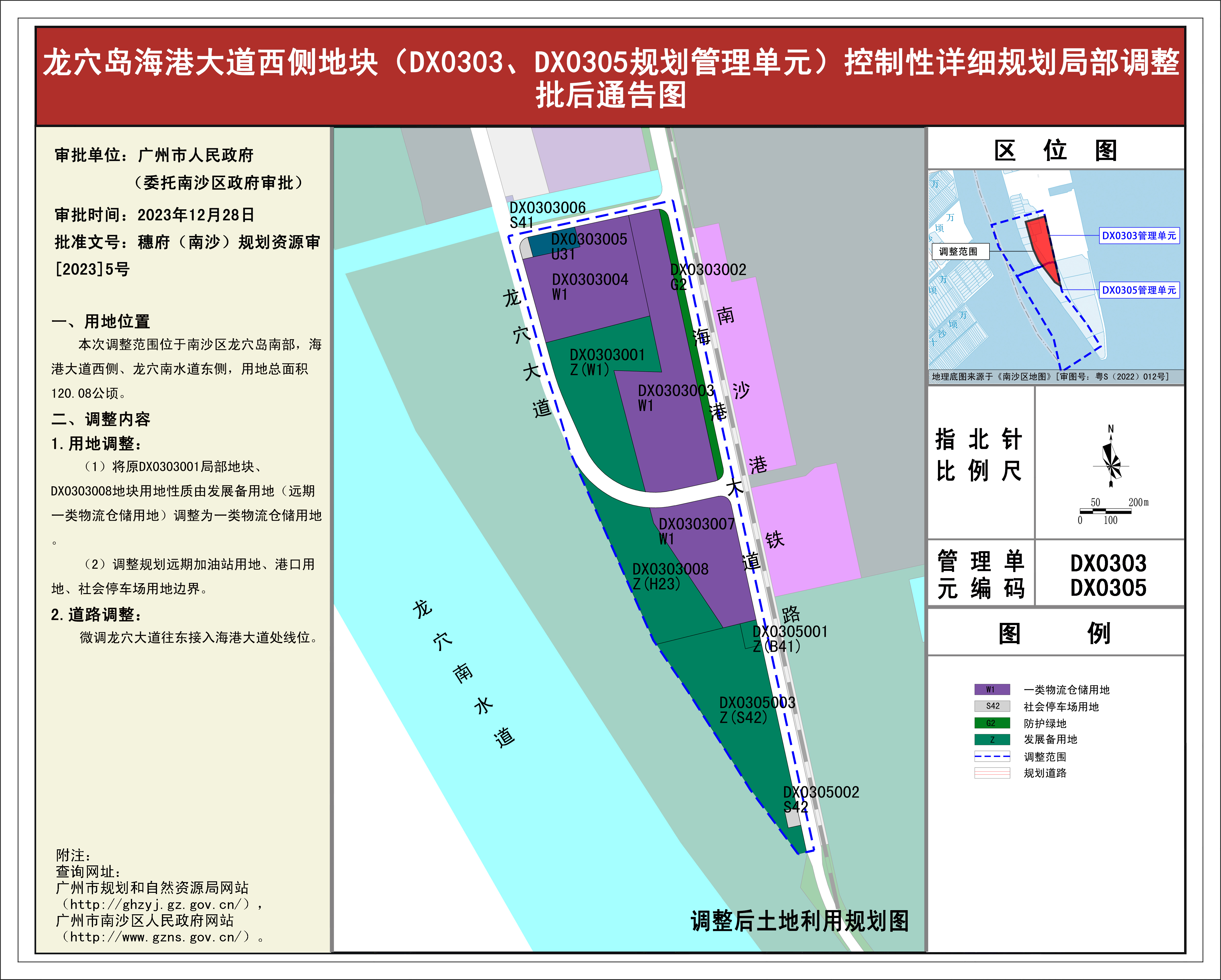 6.龙穴岛海港大道西侧地块(DX0303、DX0305规划管理单元)控制性详细规划局部调整批后通告图