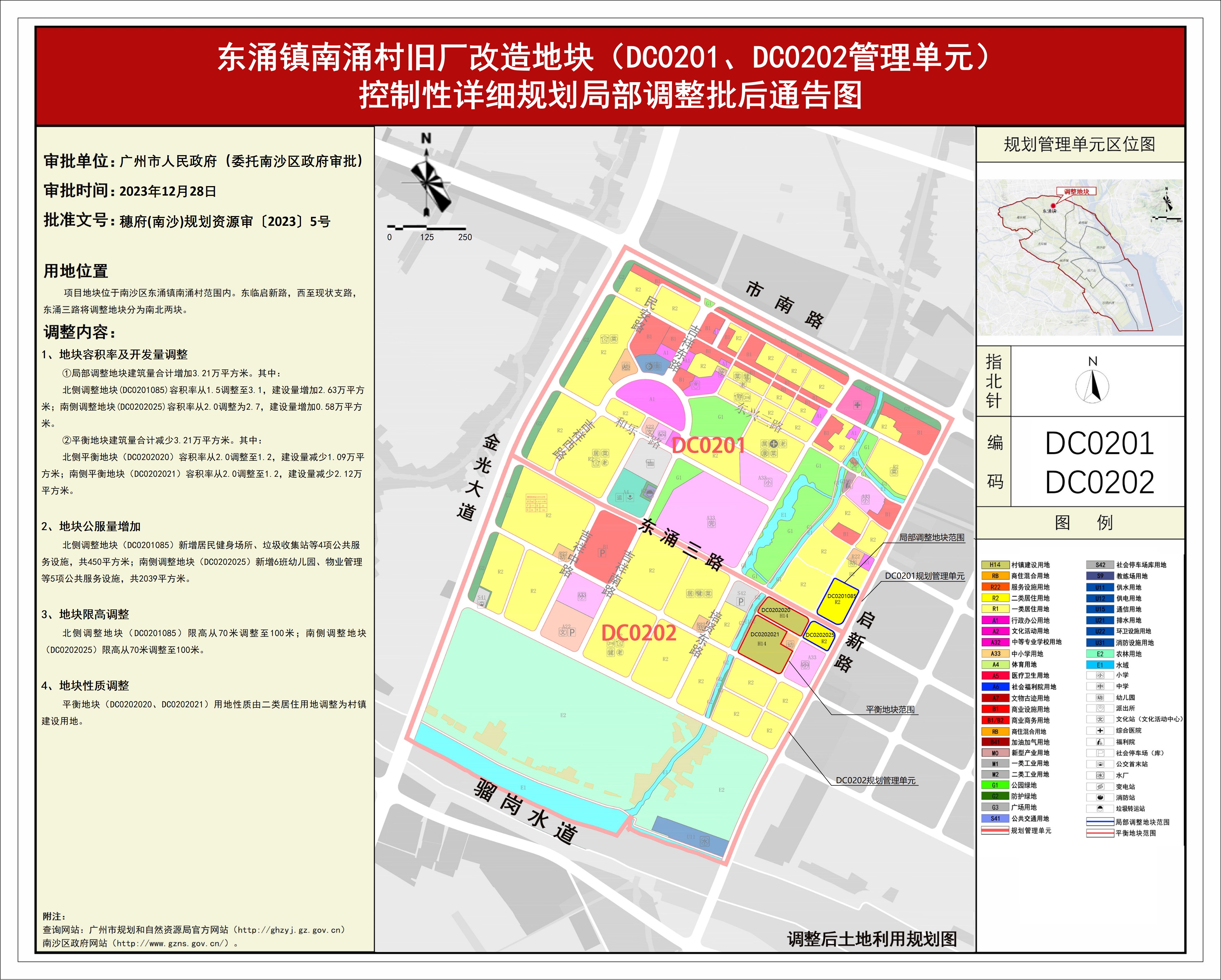 4.东涌镇南涌村旧厂改造地块(DC0201、DC0202管理单元)控制性详细规划局部调整批后通告图