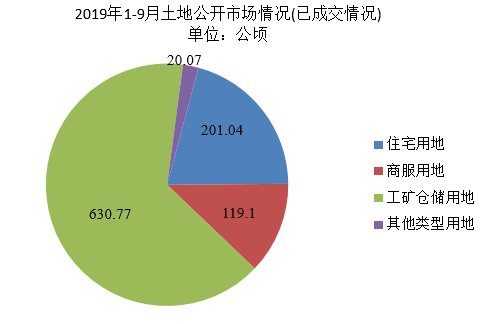 2019年1-9月全市公开出让142宗土地,用地面积970.98公顷。