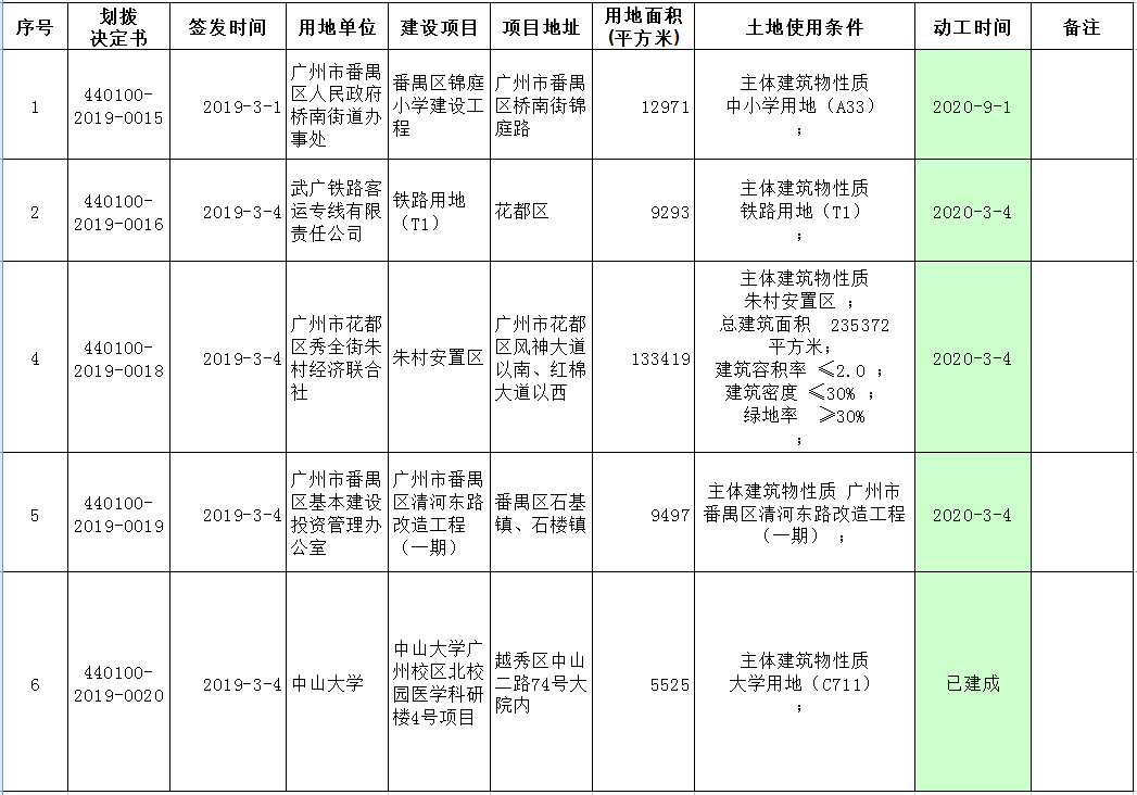 2019年2月广州市国有土地使用权划拨情况公告