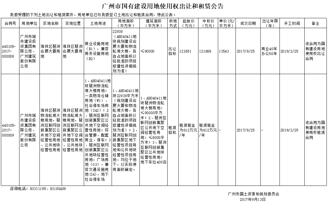 广州市国有建设用地使用权出让和租赁公告(海珠区会展大厦项目国有建设用地使用权出让、琶洲互联网创新集聚区及会展物流轮候区PPP项目)