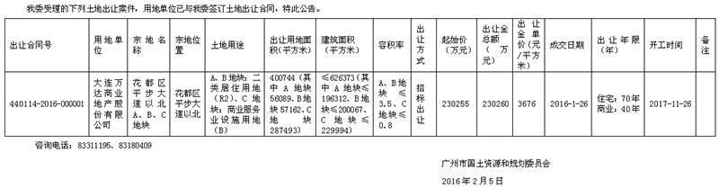 广州市国有建设用地使用权出让公告(花都区平步大道以北A、B、C地块)