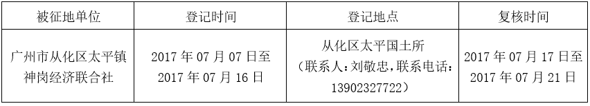 经广州市人民政府同意并经美高梅娱乐城批准(粤国土资(建)字〔2016〕164号)同意将广州市从化区太平镇神岗村地段1.9715公顷集体土地征收为国有土地。现将经依法批准的《征收土地方案》、市人民政府批准的《征地补偿安置方案》内容和有关事项公告如下: