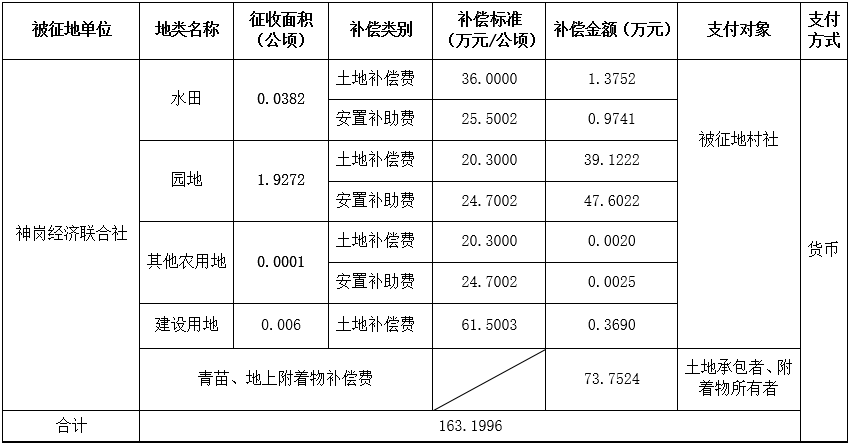 (二)本次征收土地所涉及的被安置农业人员由广州市从化区太平镇神岗经济联合社以货币补偿等形式安置。
