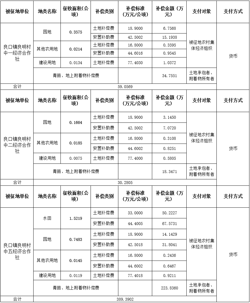 (二)本次征收土地所涉及的被安置农业人员由广州市从化区良口镇良明村中一、中二、中五经济合作社以货币补偿等形式安置。