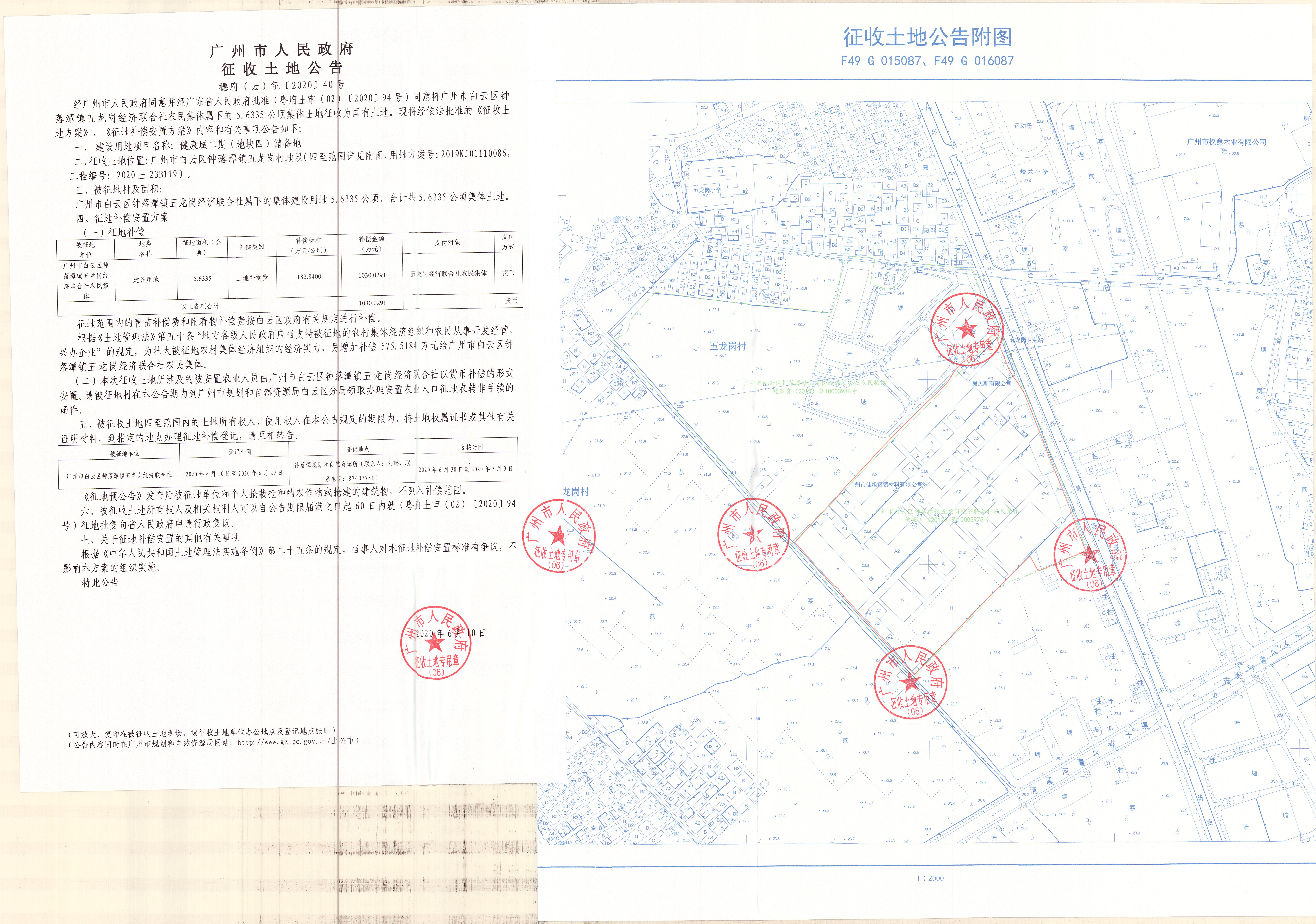 经广州市人民政府同意并经美高梅娱乐城批准(粤府土审(02)〔2020〕94号)同意将广州市白云区钟落潭镇五龙岗经济联合社农民集体属下的5.6335公顷集体土地征收为国有土地。现将经依法批准的《征收土地方案》、《征地补偿安置方案》内容和有关事项公告如下: