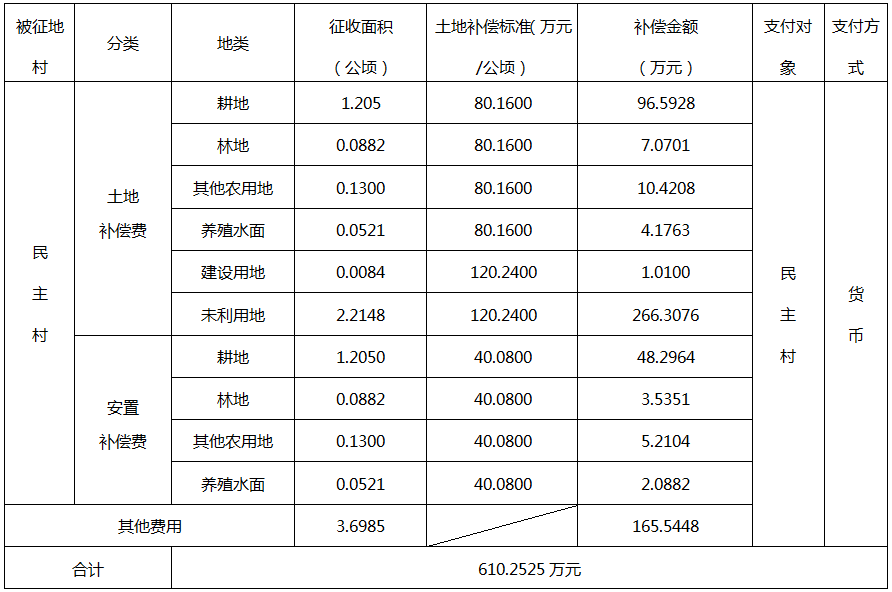 四、征地补偿安置方案: