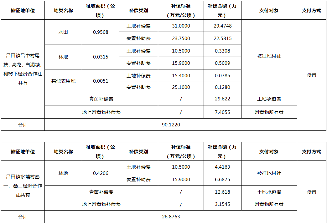 (二)本次征收土地所涉及的被安置农业人员由广州市从化区吕田镇吕中村尾扶、高龙、白泥塘、柯树下经济合作社,水埔村叁一、叁二经济合作社以货币补偿等形式安置。