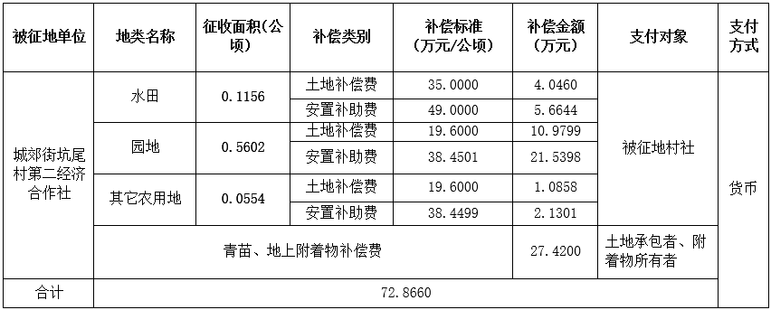 (二)本次征收土地所涉及的被安置农业人员由广州市从化区城郊街坑尾村第二经济合作社社以货币补偿等形式安置。