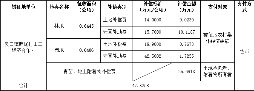 (二)本次征收土地所涉及的被安置农业人员由广州市从化区良口镇塘尾村山二经济合作社以货币补偿等形式安置。