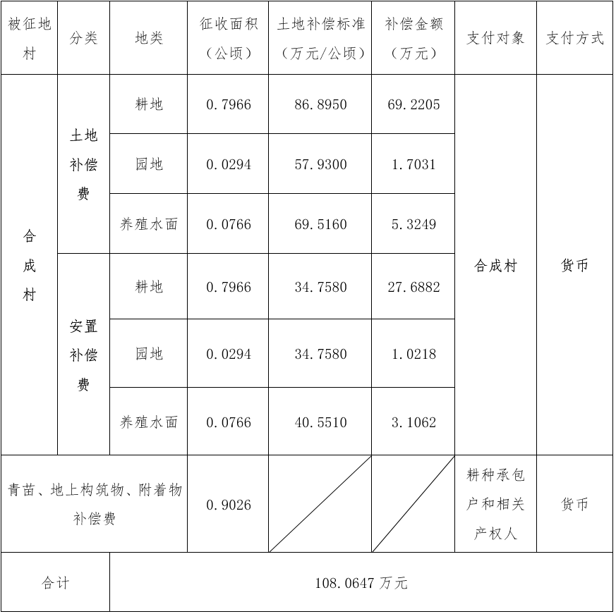 花都区狮岭镇合成村的集体土地0.9026公顷(合13.5390亩),其中耕地0.7966公顷(合11.9490亩),园地0.0294公顷(合0.4410亩),养殖水面0.0766公顷(合1.1490亩)。