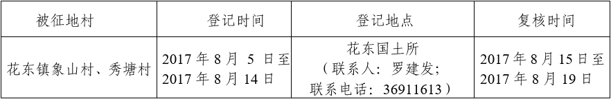 二、征收土地位置:广州市花都区花东镇象山村、秀塘村(四至范围详见附图)。
