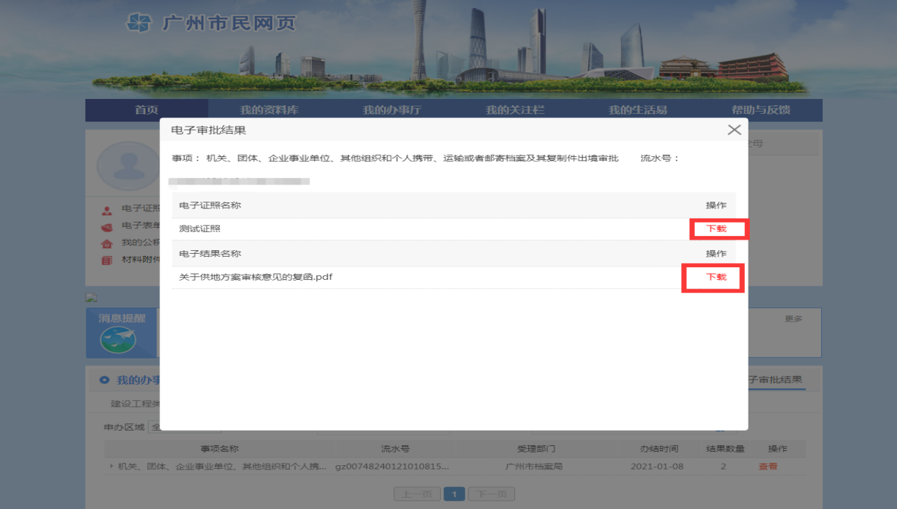 “市民网页”下载电子审批结果操作指引