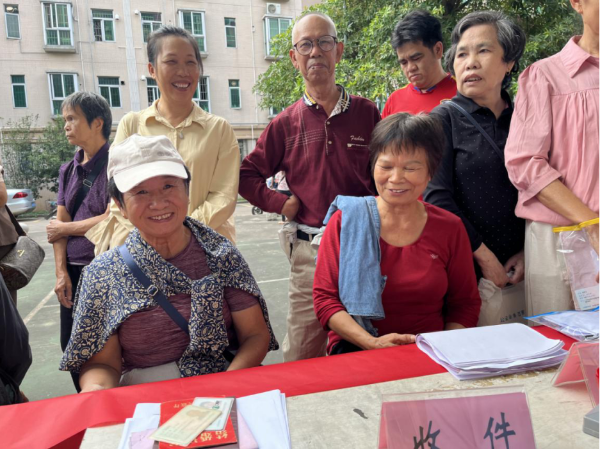 待服务完最后一位业主后,工作人员收拾好户外现场,开始为出行不便的高龄侨民上门服务。
