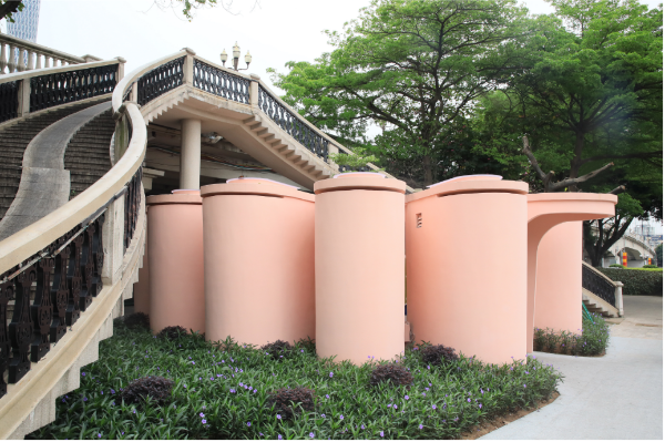 广州大桥底公厕,则展现了功能与艺术形态的完美结合,以木棉花为灵感的10片“花瓣”造型,不仅构成了灵动的立体厕位,更使建筑本身成为滨江绿带中一个轻盈而优美的雕塑性景观。