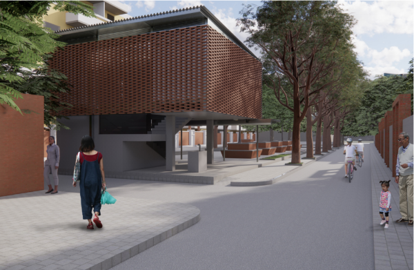 1路公交车总站公厕选用温润醇厚的岭南红砖与运用岭南红砖与定制镂空花砖,让建筑在阳光下呈现出丰富的光影层次。阳光穿透砖孔,在墙面与地面投下随时间流动的光影画卷,宛如将传统岭南窗花进行了一场现代的光影转译,让使用者在进出之间,不经意地步入一段光与砖石合奏的艺术片刻,充分诠释了“小而美”的城市美学追求。