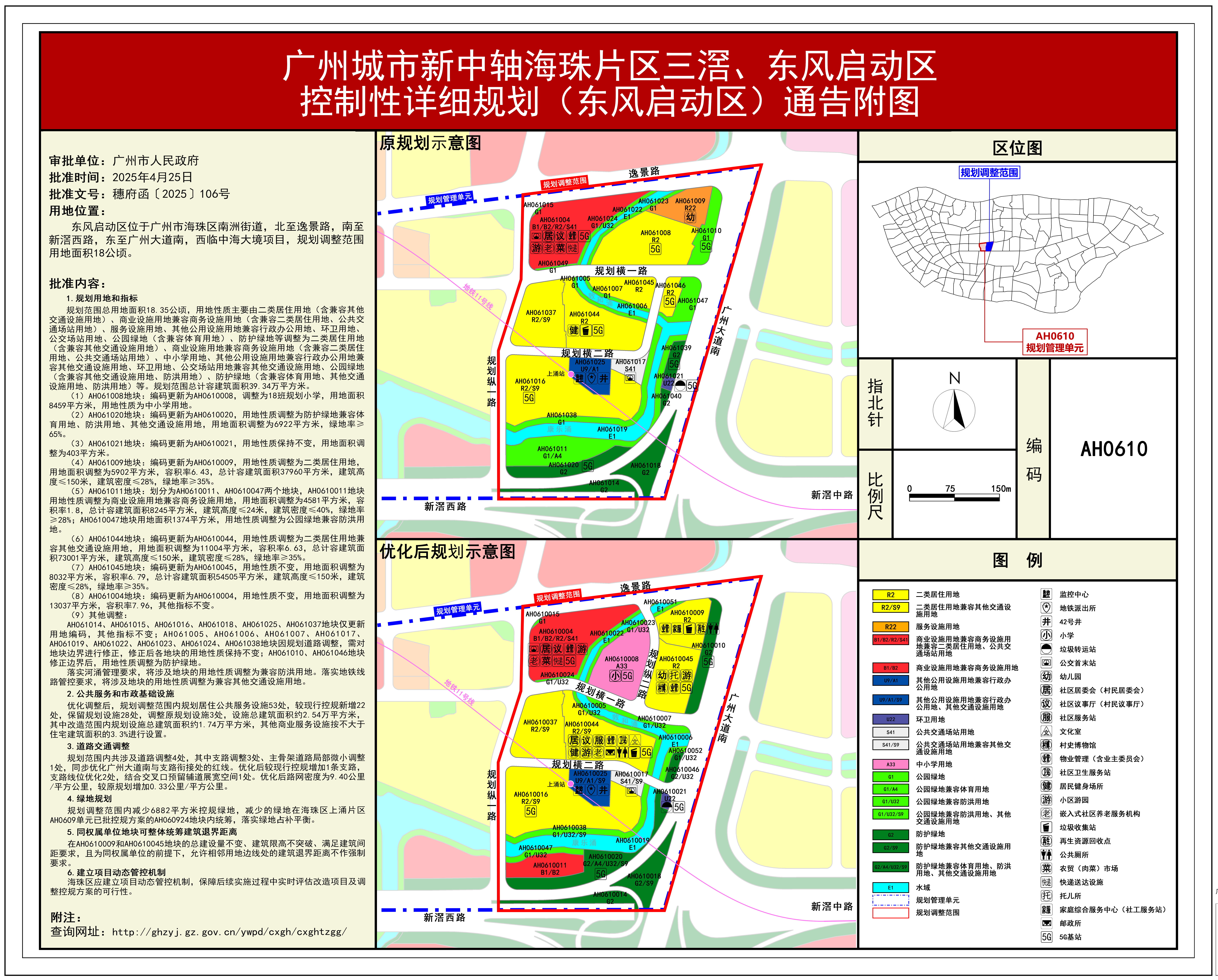根据《广东省城市控制性详细规划管理条例》,《广州城市新中轴海珠片区三滘、东风启动区控制性详细规划》《白云区嘉禾望岗地铁站周边地块(AB2112规划管理单元)控制性详细规划》《白云区大源街黄庄北路地块(AB3105规划管理单元)控制性详细规划》《番禺区番禺广场融媒体北侧地块(BC0612规划管理单元)控制性详细规划》《越秀区吉祥路30号、32号地块(AY0124规划管理单元)控制性详细规划》《天河区吉山村城市更新单元详细规划》《荔湾区浣花路AF021628地块及周边储备用地(AF0216规划管理单元)控制性详细规划》《花都区空铁大道安置区(CB1205规划管理单元)控制性详细规划》8项规划成果已完成编制、审查、公示等程序,由广州市规划委员会审议通过后经广州市人民政府批准(穗府函〔2025〕106号),自批准之日(2025年4月25日)起生效。