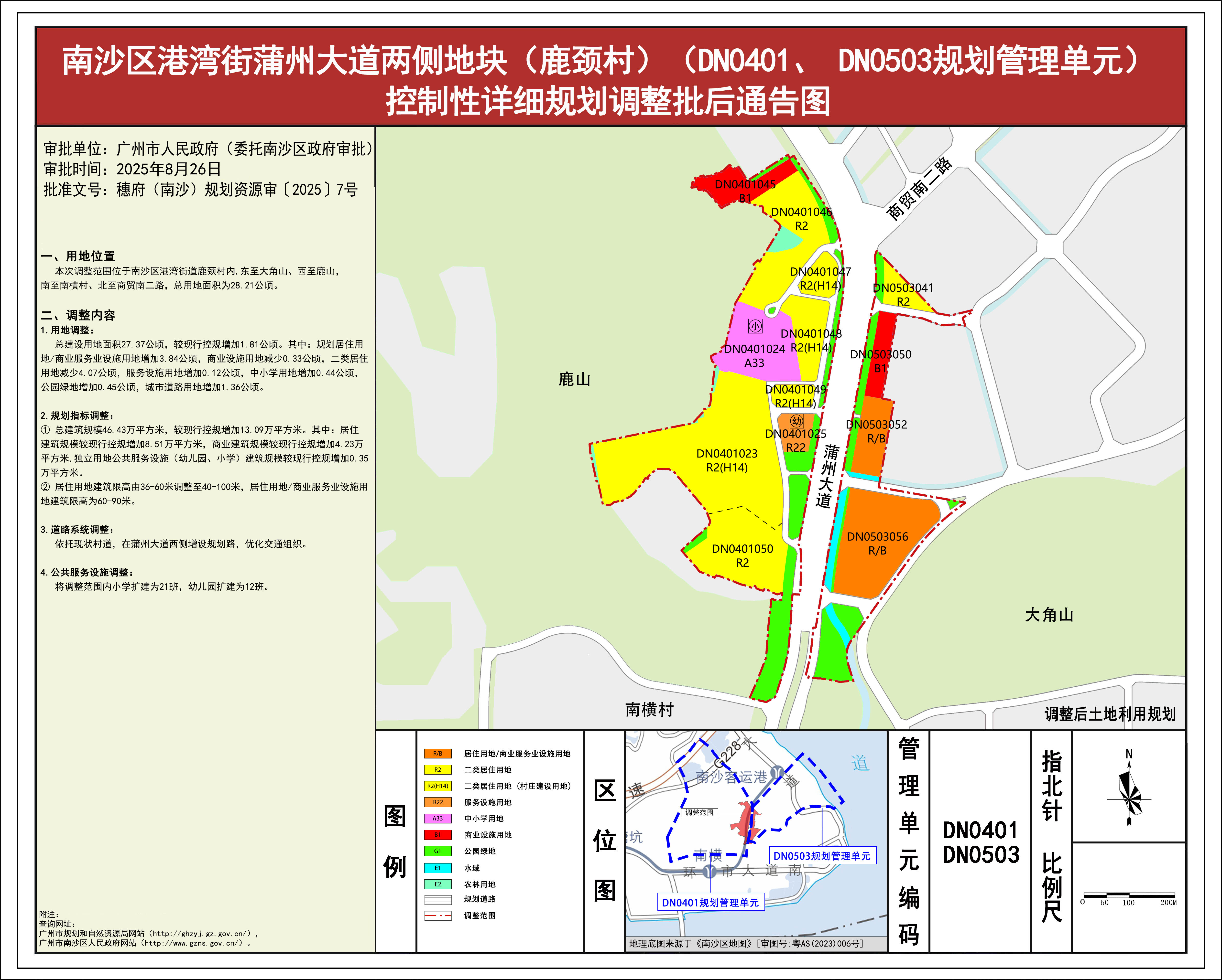 4.《南沙区港湾街蒲州大道两侧地块(鹿颈村)(DN0401、DN0503规划管理单元)控制性详细规划调整》批后通告图