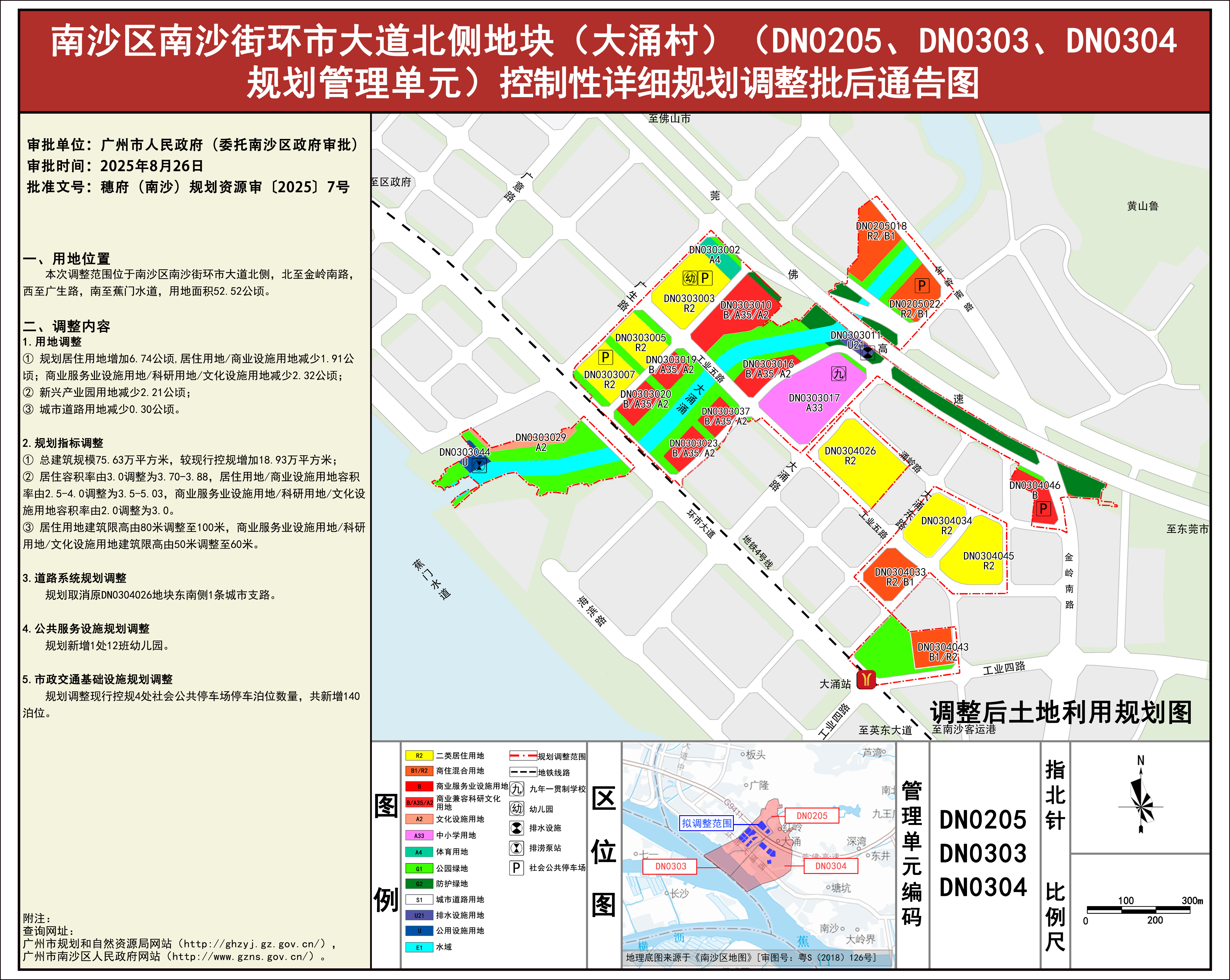 附件:1.《南沙区南沙街环市大道北侧地块(大涌村)(DN0205、DN0303、DN0304规划管理单元)控制性详细规划调整》批后通告图
