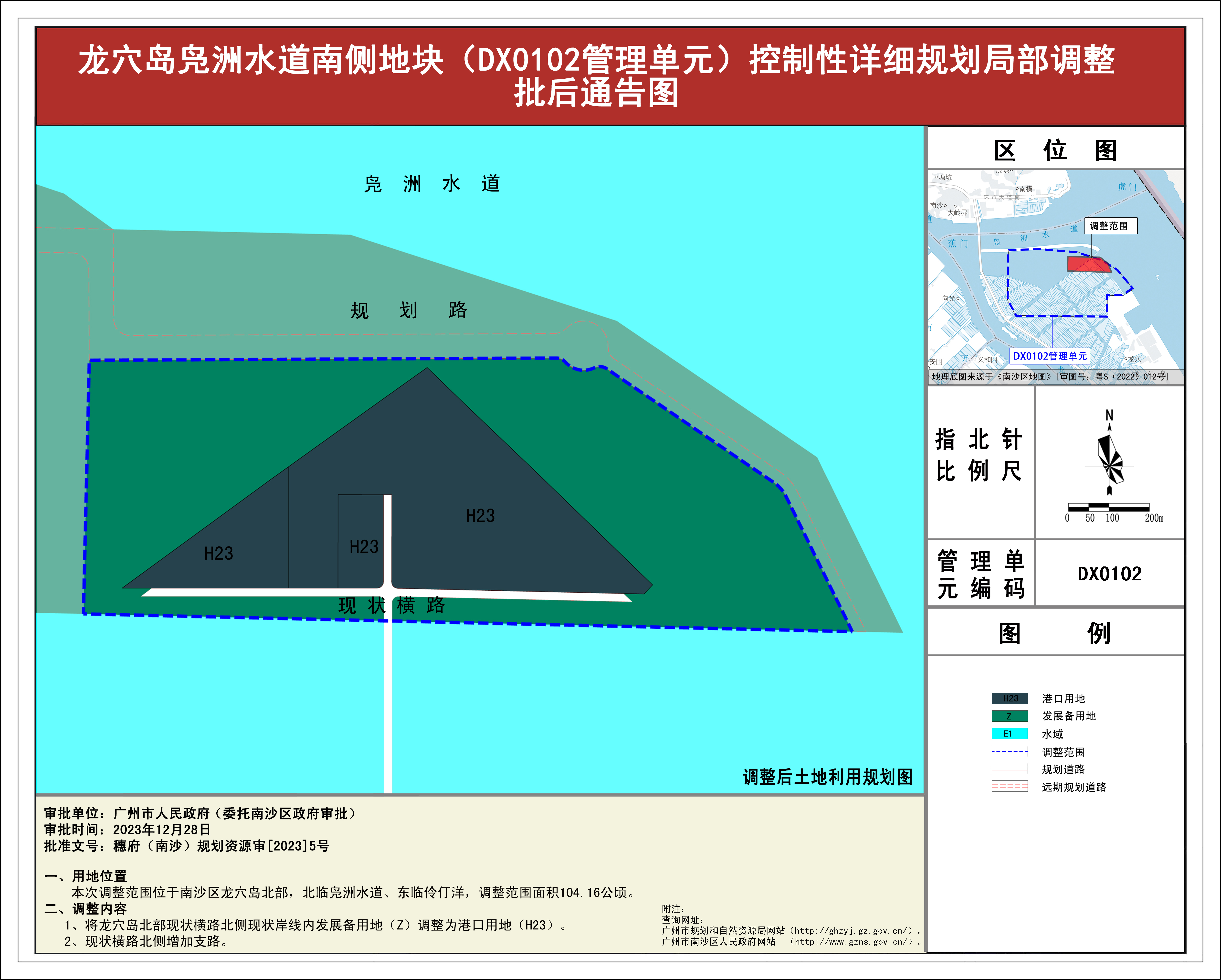 5.龙穴岛凫洲水道南侧地块(DX0102管理单元)控制性详细规划局部调整批后通告图